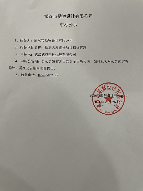 勘測(cè)大廈維修項(xiàng)目招標(biāo)代理中標(biāo)公示