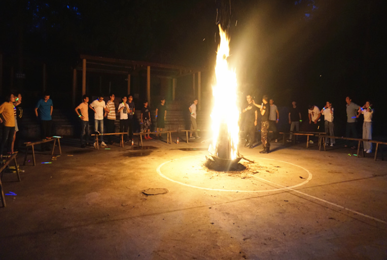 簡單的軍訓(xùn)結(jié)束后,拓展活動隨即拉開帷幕,教練向大家詳細(xì)講解了本次拓展活動的要求和具體規(guī)則,以輕松有趣的熱身方式對隊(duì)員進(jìn)行了分組,分別制定了隊(duì)名及口號,并進(jìn)行了團(tuán)隊(duì)建設(shè)、團(tuán)隊(duì)融合和團(tuán)隊(duì)展示。在5名教練的指導(dǎo)下,隊(duì)員們攻堅(jiān)克難,不斷挑戰(zhàn)自我、突破自我,先后完成了“風(fēng)雨戰(zhàn)士”、“信任背摔”、“穿越電網(wǎng)”等團(tuán)隊(duì)游戲。活動中,各隊(duì)隊(duì)員全心投入,充分調(diào)動自己的靈感和創(chuàng)造性,積極獻(xiàn)言獻(xiàn)策,協(xié)作完成了項(xiàng)目設(shè)置的層層挑戰(zhàn),掌聲、笑聲和歡呼聲此起彼伏。當(dāng)晚,一場精彩的篝火晚會在月夜下拉開帷幕,隊(duì)員們手拉手圍著篝火,隨音樂起舞。來自各部門的“文藝骨干”即興表演,引得掌聲不斷,歡呼不歇。